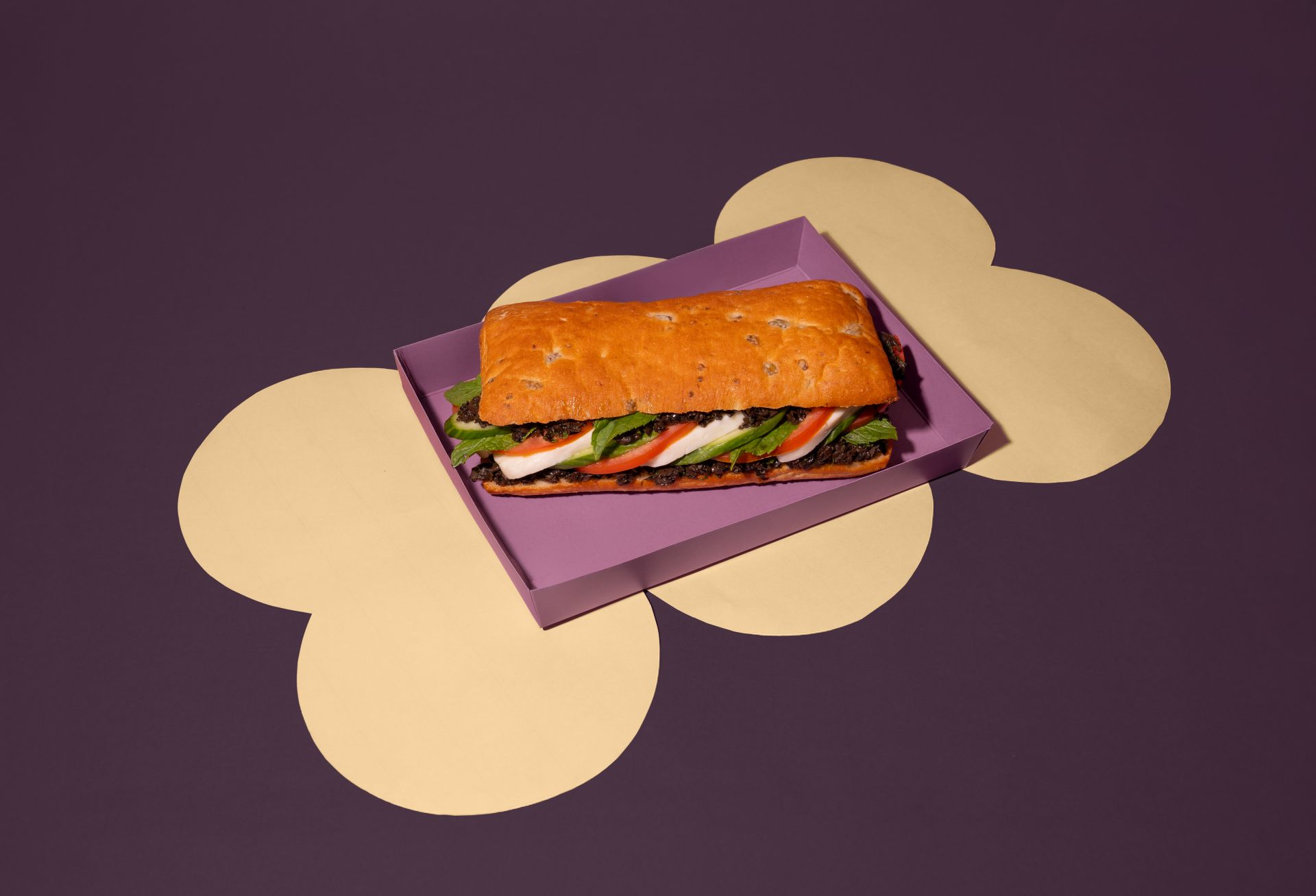 Ciabatta bread with olives – Halloumi cheese – Olives – Tomatoes – Cucumbers – Mint – Olive oil